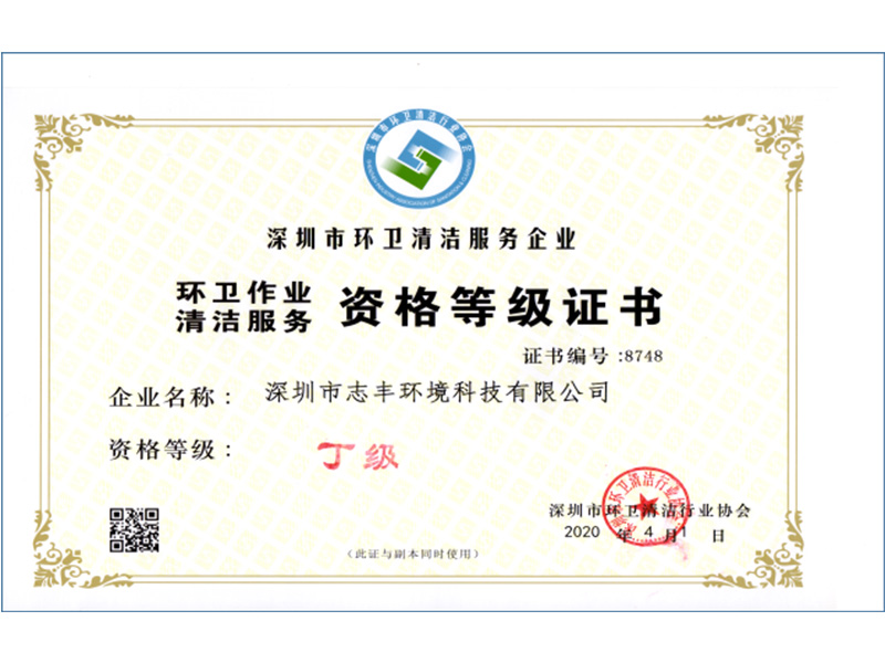 深圳市環衛清潔服務企業資格等級證書